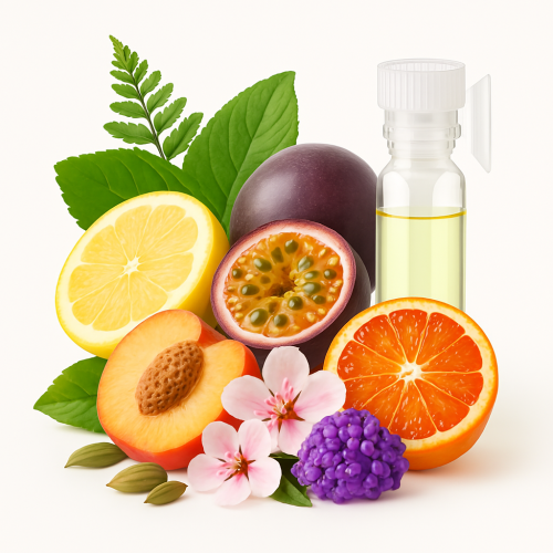 | Верхні: | лимон, листя чорної смородини, папороть, маракуйя, персик, квіти персика, червоний апельсин, кардамон, геліотроп |