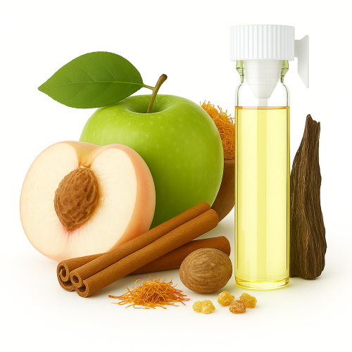 | Верхні: | білий персик, зелене яблуко, кориця, ладан, мускатний горіх, уд, шафран |
