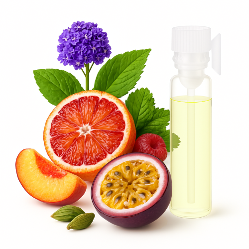 | Верхні: | геліотроп, кардамон, червоний апельсин, персик, листя чорної смородини, малина, маракуйя |