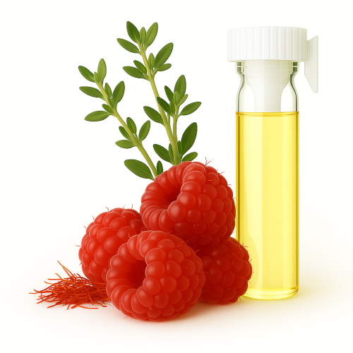 Соковита малина, теплий пряний шафран, ароматний чебрець з ніжною трав’яною гірчинкою. Пʼянкий аромат жасмину дарує квіткову витонченість, а димні й смолисті акценти олібануму створюють глибину й загадковість.