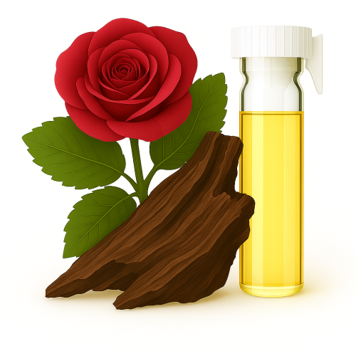 Основна нота квітково-східного еліксиру - це турецька троянда, її ніжно чаруюче звучання разом з смолясто-пряним ароматом листя пачулі звучить розкішно та багатогранно. Нотку пікантності додає тайський уд, він синонім розкоші та високої енергії в парфумерії. Всі компоненти доповнюють один одного наповнюючи власника теплом, ніжністю та королівським шармом.
